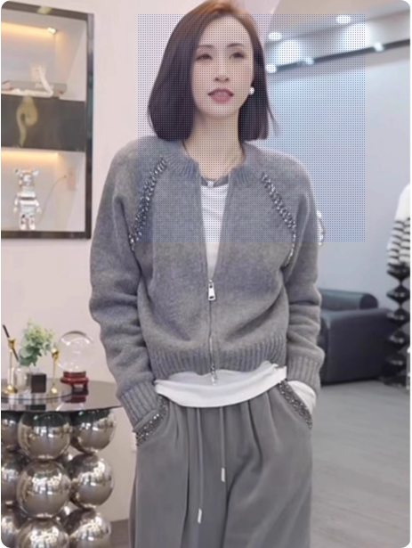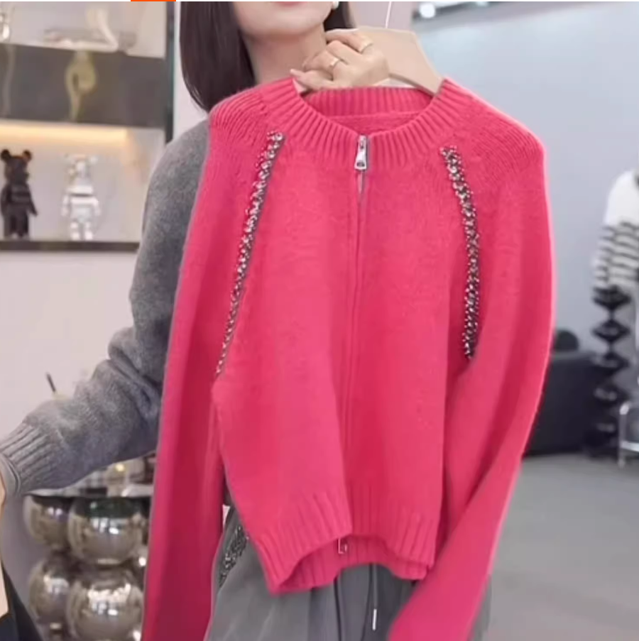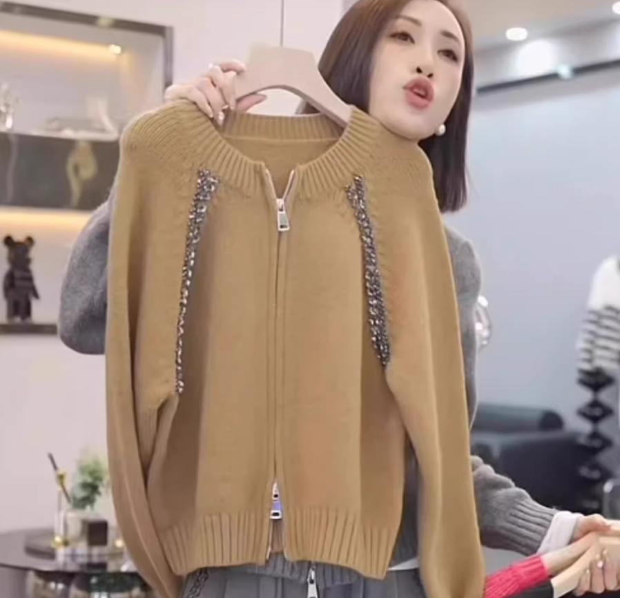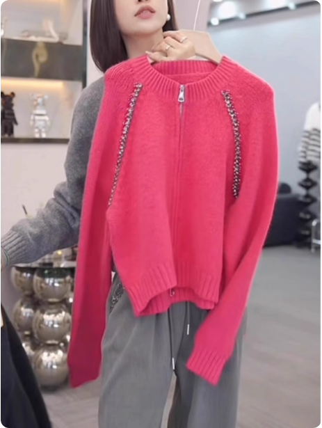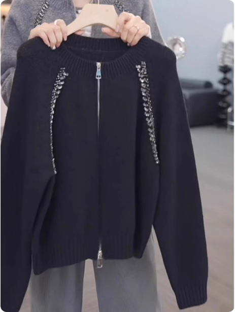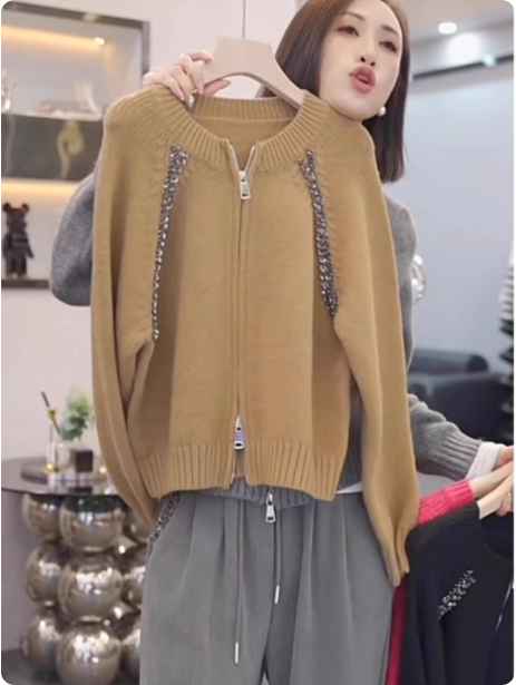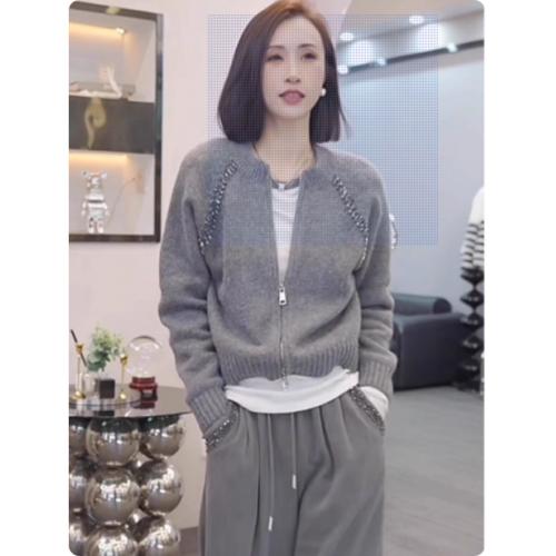 灰色毛衣女士双拉链针织开衫短款外套
